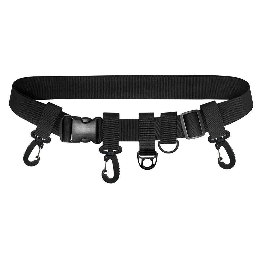 Schwarzer Angel-Utility-Gürtel mit 2 D-Ringen, 3 drehbaren schweren Haken zum Aufhängen von Angelwerkzeugen und Zubehör
