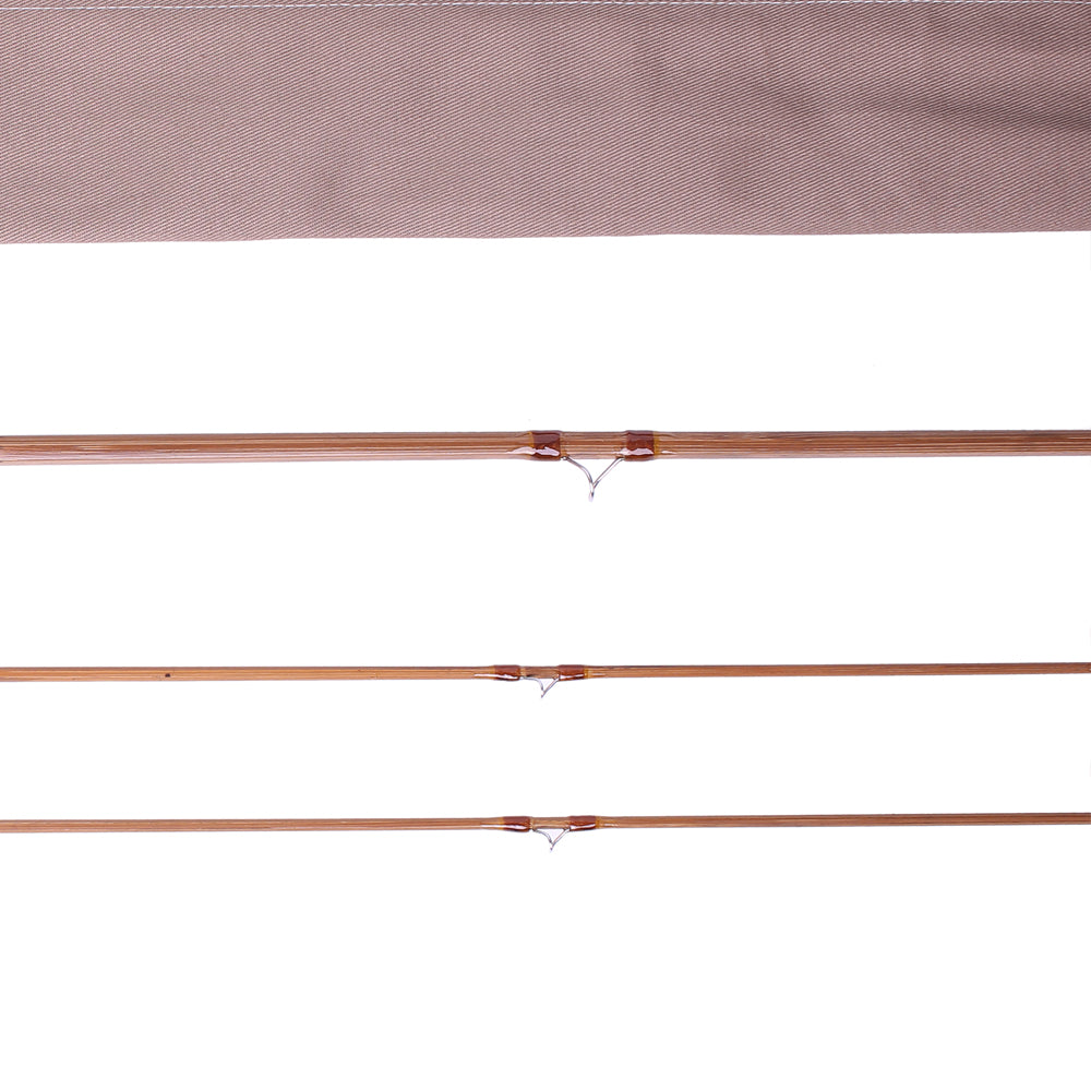 Les ajustements de la virole sont bons et la tige est droite. Nous avons beaucoup de cannes qui passent entre nos mains et avons la chance de pouvoir les assembler et ressentir l'action, et celle-ci me fait penser "Hmmmmmm, j'adorerais pêcher ça !". Les enveloppes sont brunes mais environ 1 teinte plus claire que ce que j'ai l'habitude de voir. Il y a une bande orange et violet foncé au niveau du gardien et des viroles mâles uniquement. Le gardien est un plat à droite. Les guides sont un décapant d'agate et des serpents en acier à haute teneur en carbone torsadés américains traités thermiquement. Le vernis est bon, sans éclats ni crochets. La poignée de style occidental mesure 6" de long et est composée de bouchons de 3/8" et a été nettoyée avec des stries mineures. Le porte-moulinet est un verrou à vis avec une entretoise en cèdre espagnol verni.
