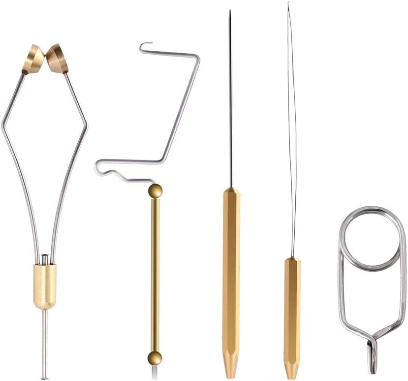 Kylebooker vliegbindgereedschap, vliegbindset met onderdraadhouder, draadinrijger, knoopzweepfinisher, hackletang, bodkin, vliegvisaas